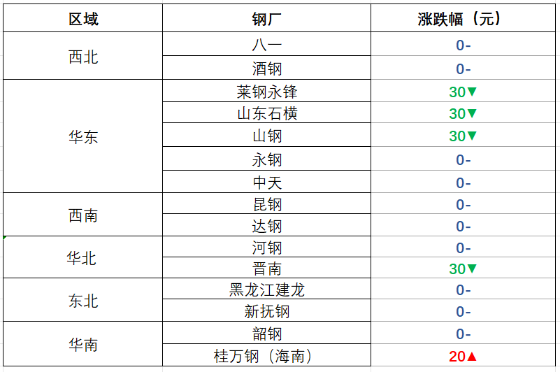 鋼廠方面:據(jù)不完全統(tǒng)計,上個交易日國內(nèi)家5家鋼廠建材出廠價格出現(xiàn)調(diào)整,多數(shù)鋼企維持平盤。