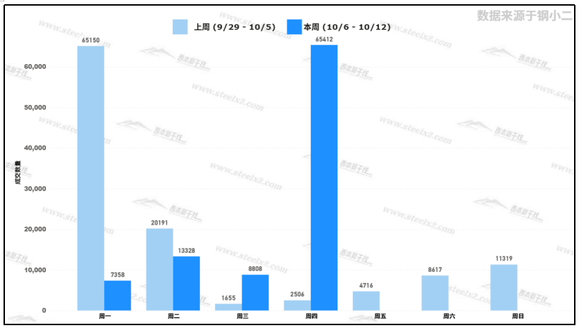據(jù)鋼小二平臺樣本數(shù)據(jù),10月9日采樣全國工程需求量為65412噸,環(huán)比上個交易日大幅增長。