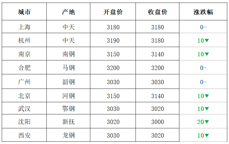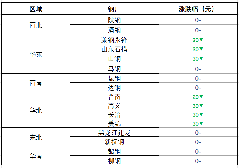 鋼廠方面:據(jù)不完全統(tǒng)計,上個交易日國內(nèi)家7家鋼廠建材出廠價格出現(xiàn)調(diào)整,調(diào)價鋼企全線下調(diào)。