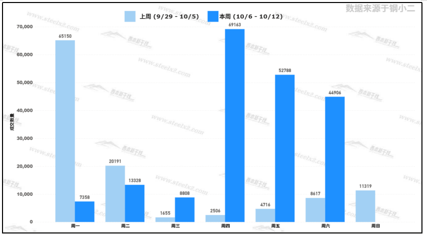據(jù)鋼小二平臺樣本數(shù)據(jù),10月11日采樣全國工程需求量為44906噸,環(huán)比上個交易日下降14%。